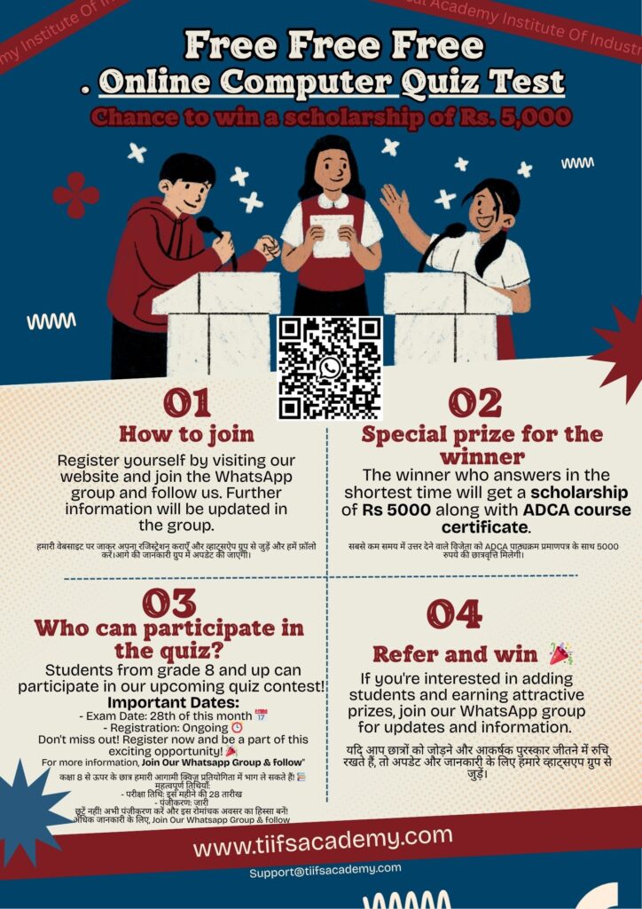 #TIIFSQuiz2025 #ComputerQuiz #FreeCompetition #ScholarshipOpportunity #ADCA #TechChallenge #LearnAndWin